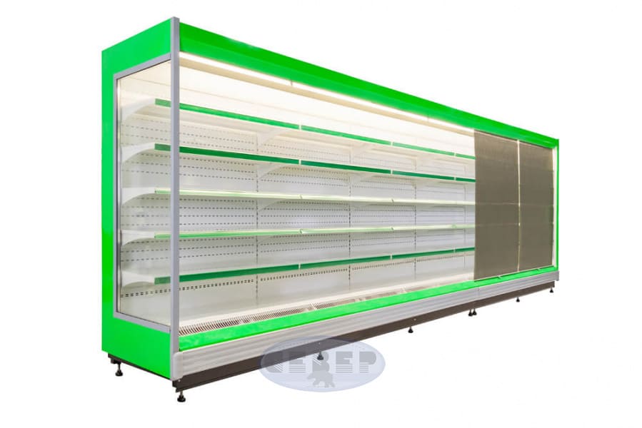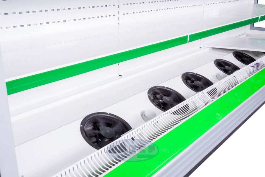 Набор опций достаточно обширен и, как правило, в состоянии удовлетворить потребности любого нашего клиента. Все охлаждаемые горки имеют подсветку экспозиции, как минимум, в виде одного ряда люминесцентных ламп, размещенных на канапе. Горки могут быть укомплектованы подсветкой каждого уровня полок, что позволяет в максимальной мере увеличить рентабельность оборудования.